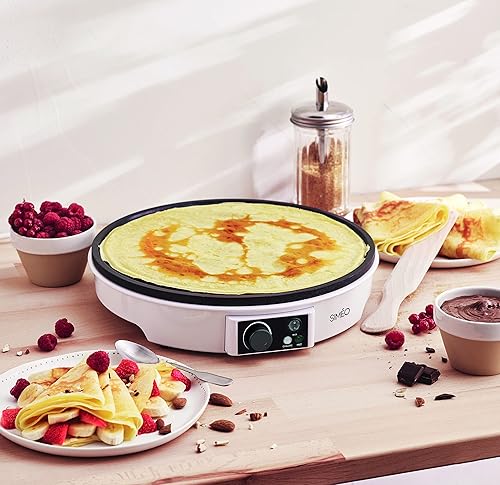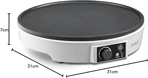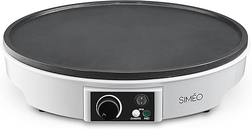 Siméo - Crêpière Électrique CRE245 - Cuisson Homogène, Revêtement Anti-Adhésif, Thermostat Réglable - Appareil à Crêpes Sucrées ou Salées - Blanc, 7 x ∅30 cm