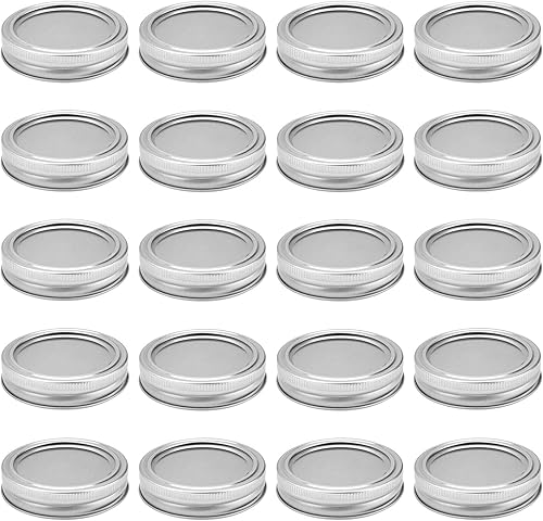 Type Fendu Mason Jar Lids, HERKINDNESS 20 Pièces Canning Lids en Fer, Mason Jar Lids avec Couvercles en Silicone, Canning Lids pour Mason Jar pour Pots de Confiture Miel