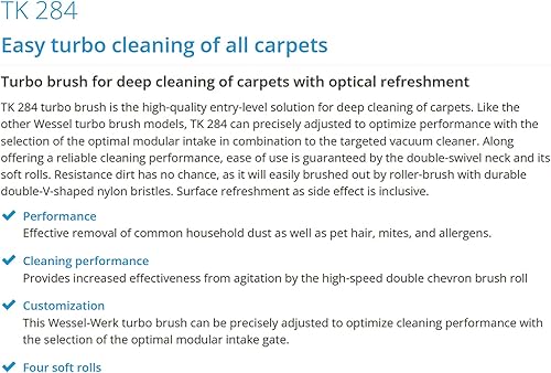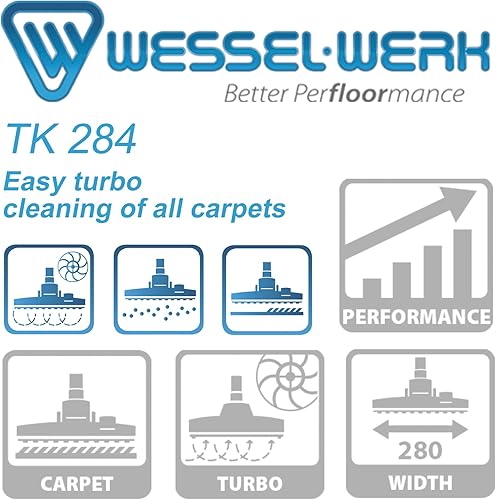 Wessel Werk Brosse à Rotation TK284 pour Aspirateur Tête de Nettoyage pour Sols Durs & Moquettes Économe en Énergie Compatible avec Henry Vax Bosch Hoover Miele Rowenta
