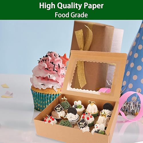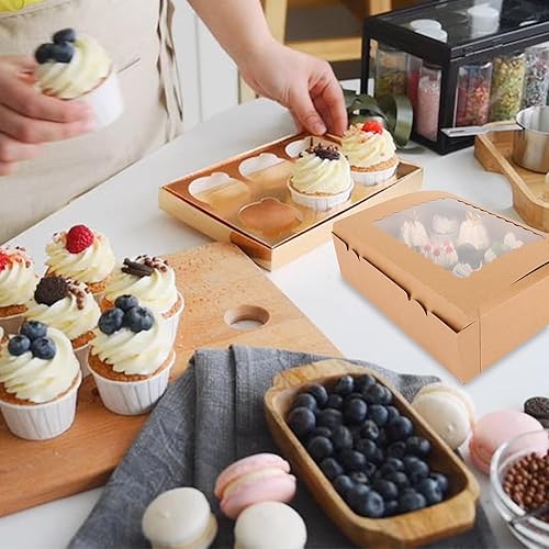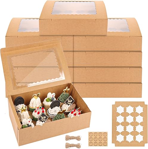 WOPPLXY Lot de 10 Boite Cupcakes 12 Trous, Boite Cupcakes avec Fenêtre Transparente et Autocollants, Boite a Cupcake en Papier Kraft pour Cupcakes Muffins Petits Gâteaux Décoratifs