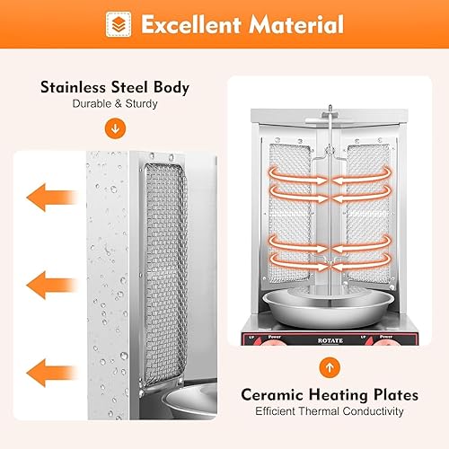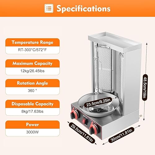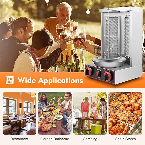 FANYING Machine à shawarma à 2 brûleurs Machine à Gril shawarma Commerciale Rôtissoire Grill Kebab Rôtissoire Verticale Poulet Turc Doner Kebab Broiler pour Cuisine Restaurant