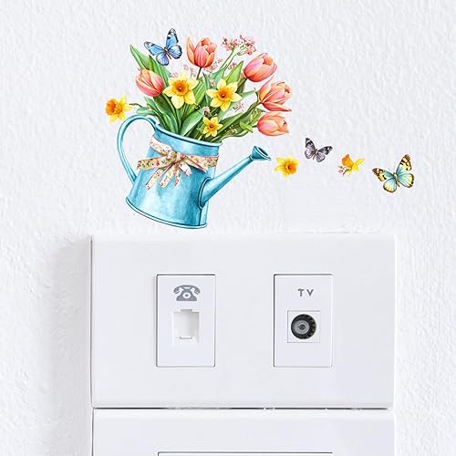 Lot de 5 autocollants décoratifs pour interrupteur Motif papillon et pot de fleurs