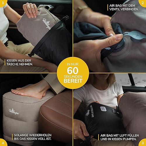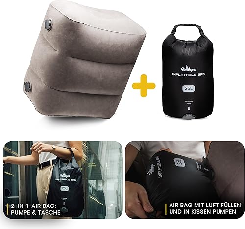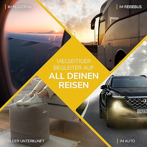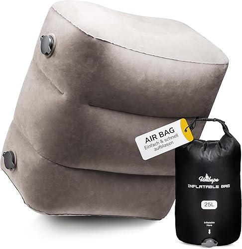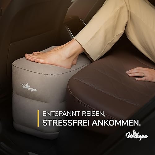 UMBAPA Repose-pieds gonflable gris chaud | Votre compagnon idéal pour les longs voyages. Extrêmement résistant et facile à utiliser. Avec sac de gonflage pratique. Voyage confortable et luxueux
