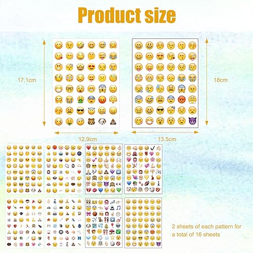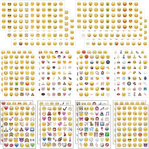 Lot de 22 Feuilles D'autocollants Smiley, Autocollants Smiley, Autocollants Émoticônes Amusants, Décoration Carnet Notes, Autocollants Émoticônes, Autocollants D'Incitation pour Enfants