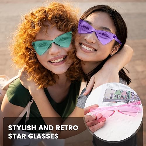 ZHXGO Lot de 12 paires de lunettes de soleil drôles en forme d'étoile rétro - Lunettes de soleil transparentes - Teintes magiques - Pentagramme - Pour fête d'anniversaire