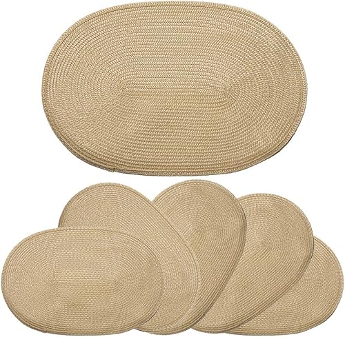 byoeko Lot de 6 sets de table ovales décoratifs de 45 x 30 cm (beige clair)