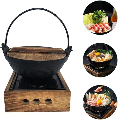 Milisten Sukiyaki Pot à shabu individuel Moyeu Shabu Shabu Cuisinière Pot chaud japonais Pot à fondue Shabu Pot chaud traditionnel Corée du Sud Corée du Sud Bois + Fer