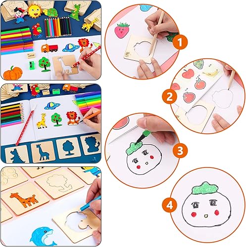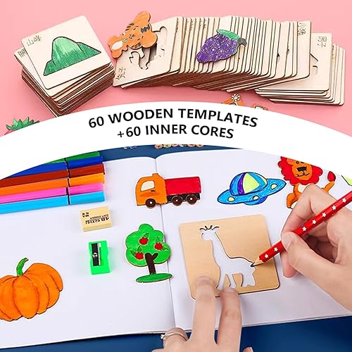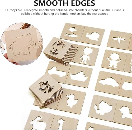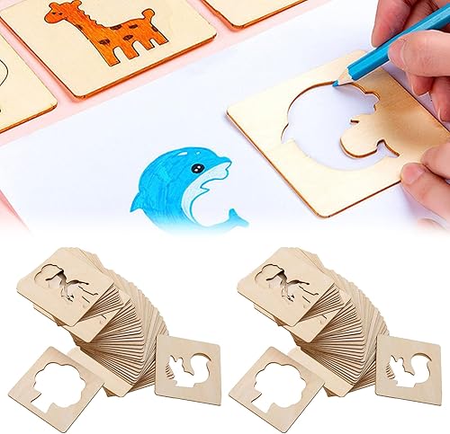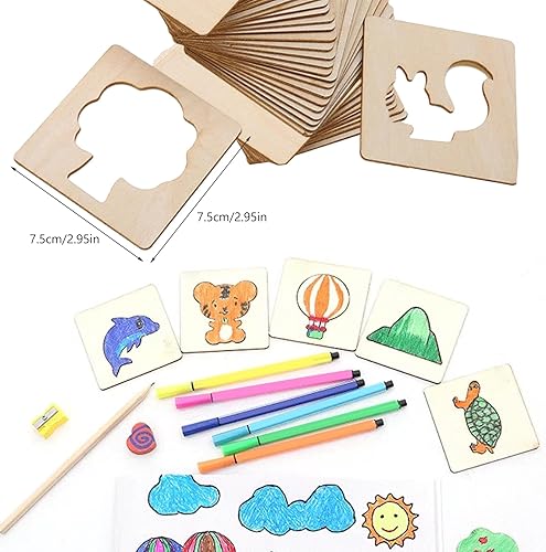 WANDGU Pochoirs à dessin pour enfants : 60 pochoirs en bois de 8 x 8 cm - Pochoirs à dessin en bois - Pochoirs à dessin pour enfants - Réutilisables - Pochoirs pour peinture DIY artisanat