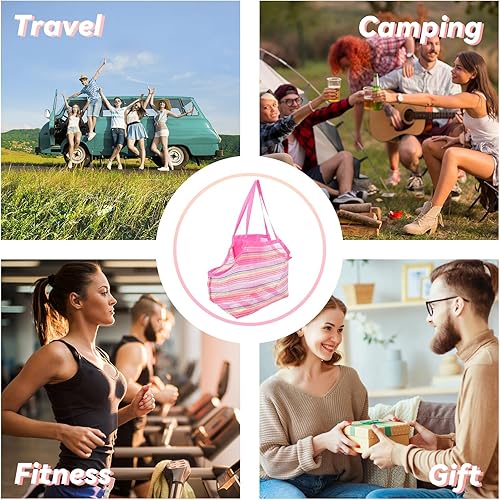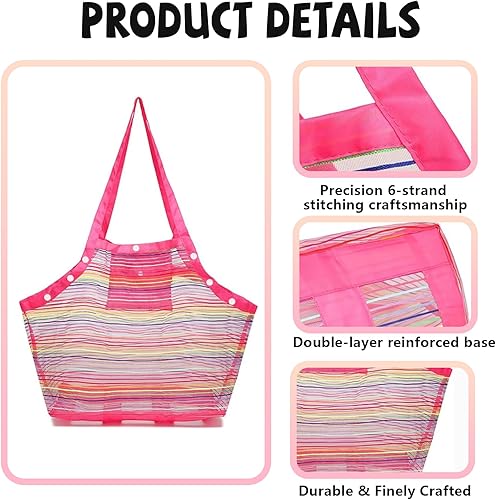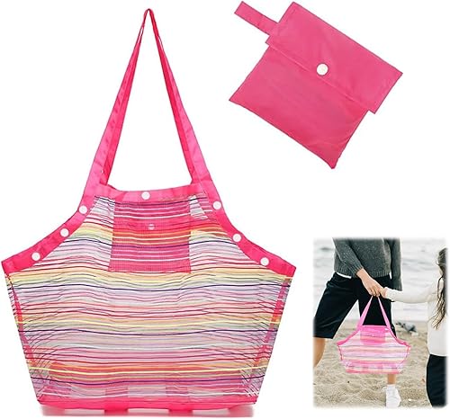 ARTGUTS Sac à jouets de plage avec filet renforcé, pliable, grande capacité, en maille, arc-en-ciel, robuste et léger, organisateur pour les vacances en famille, la plage, la piscine (rose)