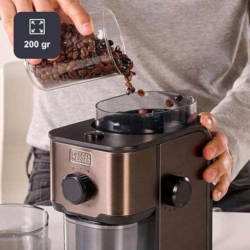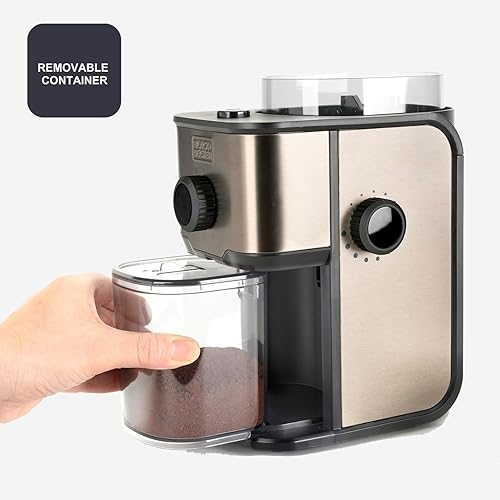 BLACK+DECKER BXCG150E - Moulin à Café Électrique 150 W, Réservoir à Grains 50 g, Lames et Réservoir en Acier Inoxydable, Broyage Fin, Rangement de Cable, Noir