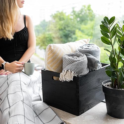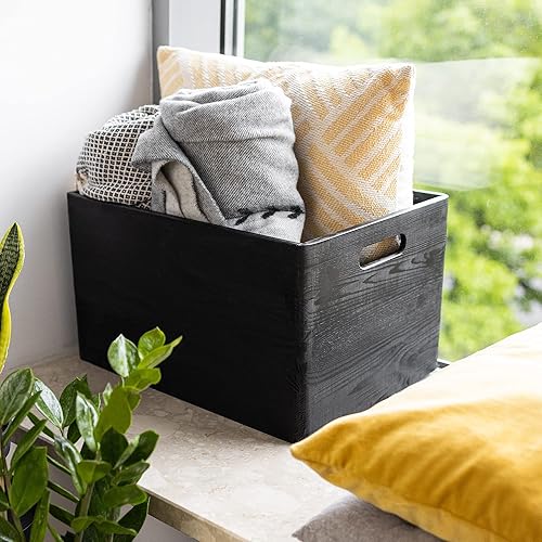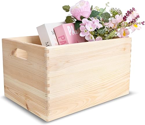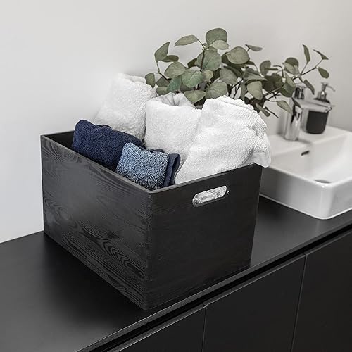 Creative Deco Caisse Bois Rangement | 40 x 30 x 24 cm (+/- 1cm) | Boîte de Rangement Bois avec Poignées | Boite Rangement Cuisine | Caisse de Rangement Bureau | Casier de Rangement