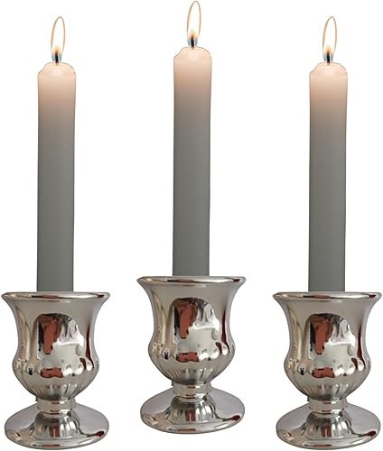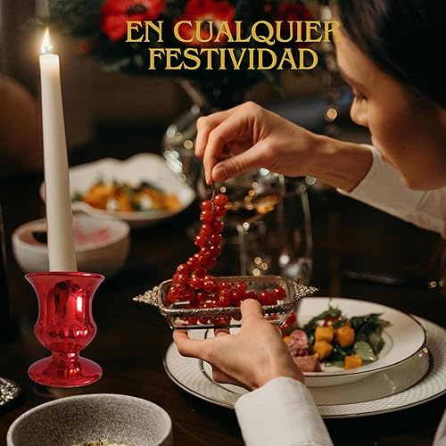 Bonyelite Lot de 3 bougeoirs en verre pour bougies | Couleurs rouges et argentées | Décoration élégante pour tables de mariage, maison et événements | Design délicat et brillant (rouge)