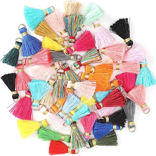 50 Pièces Glands Colorés Mini Glands Pendentifs, 2cm Couleur Glands DIY Décoratifs Tassel, Coton Gland Artisanat Fil, Porte-clés, lanières, décoration, Fabrication de Bijoux, Marque-Pages