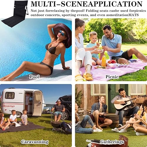 DASIAUTOEM Chaise de plage avec dossier, tapis d'assise, chaise de sol, coussin d'assise pliant, portable, chaise de méditation, chaise de stade, coussin d'assise de camping, chaise de plage, pliable
