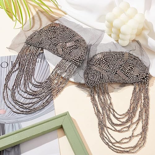 WEBEEDY 2 PCS Main Perles Feuilles Glands Patchs Épaulettes Épaule Applique Gland Chaîne Collier Patchs Badge Frange Épaule Badge Strass Applique pour Costume de Danse de Mariage