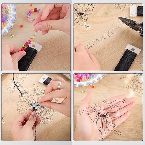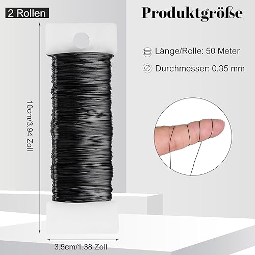 Fil de bricolage, 0,35 mm x 100 m, noir, pour travaux manuels, bijoux, nœuds, fleurs, modélisation, fabrication de bijoux, travaux manuels (50 m par rouleau)