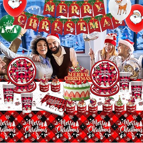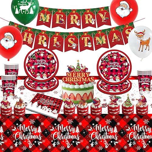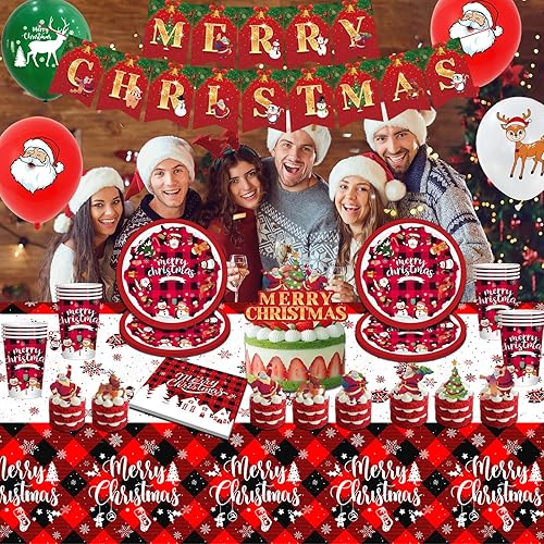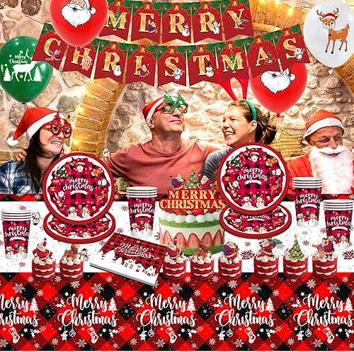 Hiaktnlh Vaisselle de fête de Noël, décoration de Noël anniversaire d'enfant, ensemble de vaisselle de Noël spécialement conçu pour la maison, articles de fête (SHENGDANJIE-D2)