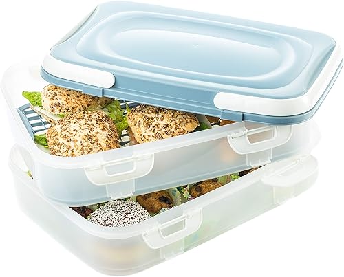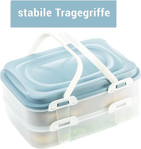 SUSTANIA Boîte de transport pour gâteaux, cupcakes, muffins, 1 pièce, récipient à gâteau avec insert de levage pratique, fermetures à clic et poignées de transport, 2 étages, 40 x 30 x 18 cm, fabriqué