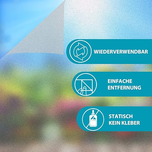 90x200cm Film pour fenêtre Film de Verre dépoli Opaque Auto-adhésif Film de confidentialité Anti-UV avec adhérence Film de Verre pour Salle de Bain à Domicile ou Bureau Verre en Plastique Blanc