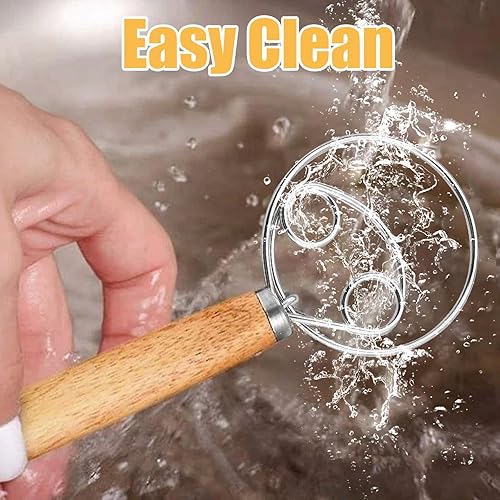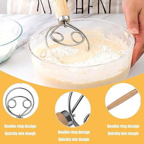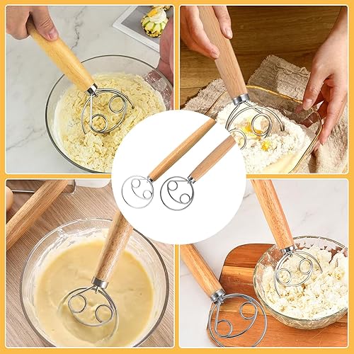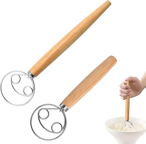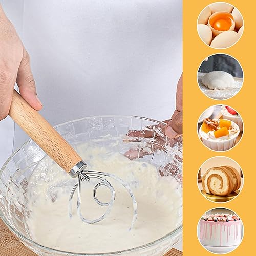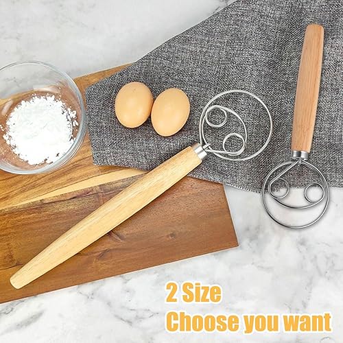 Niaciswe Fouet Danois Fouet de Pâte Dough 2pcs Fouet Danois (33 cm & 24 cm) Fil en acier Inoxydable avec une Poignée en bois Confortable Chauve souris D'oeufs pour La Production de Gâteaux Pâtisseries
