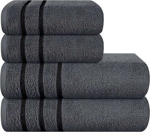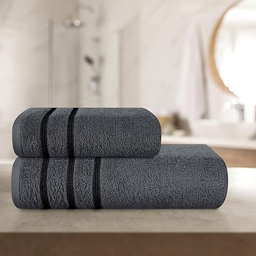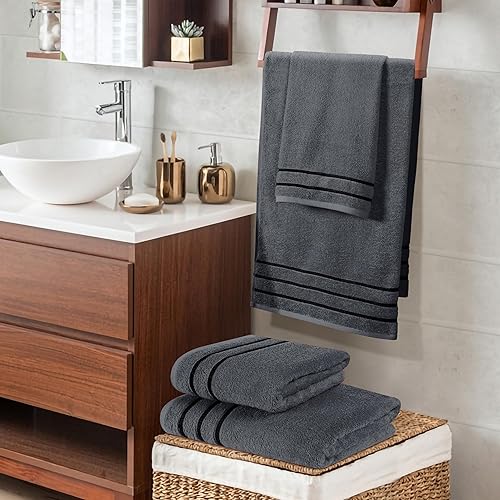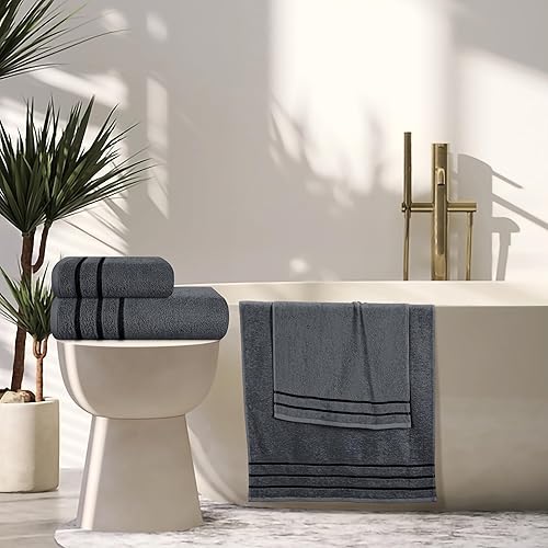 MyOwn Lot de 4 serviettes en coton ultra doux comprenant 2 serviettes de bain 70 x 140 cm, 2 serviettes 50 x 90 cm, pour un usage quotidien, compact et léger, gris charbon de bois