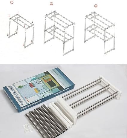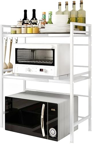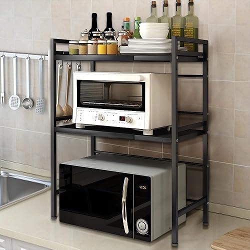 LIUNNCC Support de Four à Micro-Ondes Extensible,Etagere Rangement Cuisine Four à Micro Ondes,Support de Four à Micro-Ondes,Etagere Cuisine Micro Onde en Métal,jusqu'à 25 kg (63 * 24 * 47-87cm)