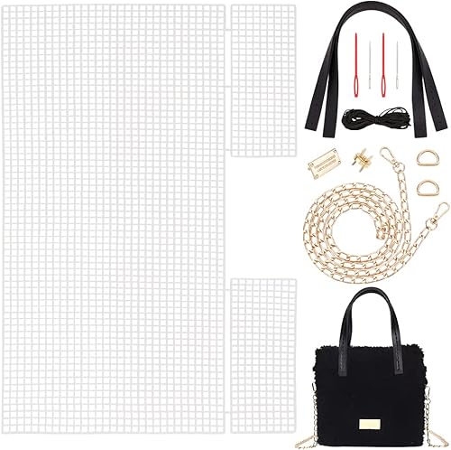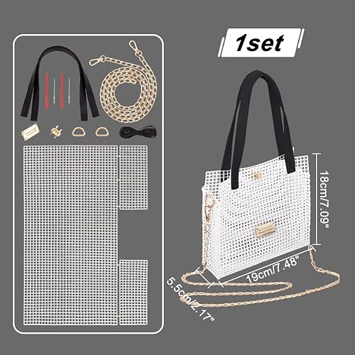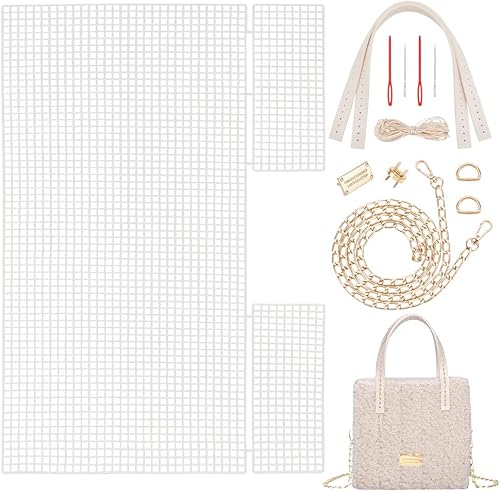 WADORN DIY Tricot Crochet Sacs Kit, Kit de Fabrication de Sacs Tissés à la Main en Maille de Feuilles de Toile en Plastique pour Croix Sac à Main Artisanat Kit de Tissage de Fil, Abricot