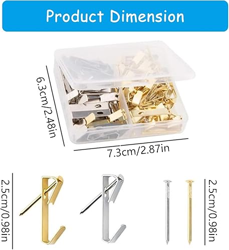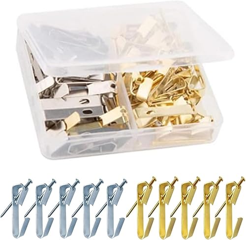 uikios Lot de 40 crochets de suspension en métal avec clous robustes pour accrocher des photos sur bois/cloisons sèches