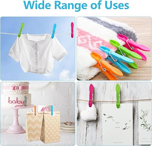 Crihovy 48 Pièces Pince à Linge Plastique, Epingle a Linge, Pinces Clips, Épingles à Linge résistant et Anti-Vent pour Les Serviettes, Vêtements, Chaussettes, Cordes à Linge, Cuisine, Bureau 4 Couleur