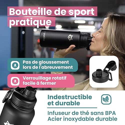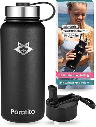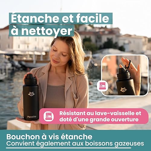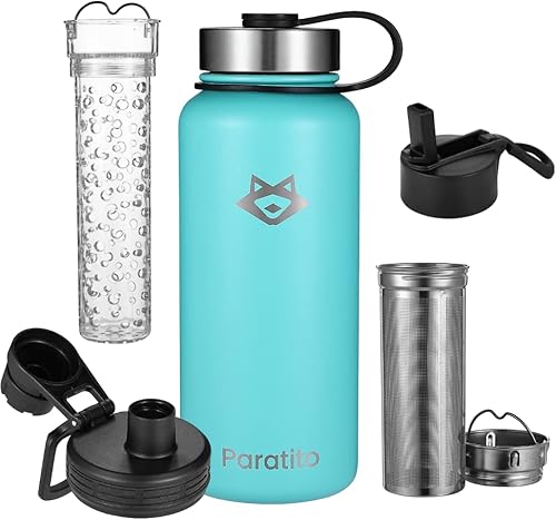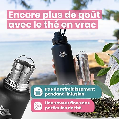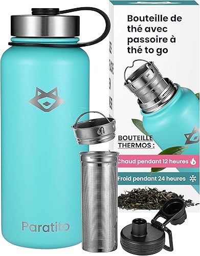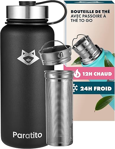 Paratito® Thermos Thé et Café Isotherme avec Infuseur à Thé et Fruits – Gourde Infuseur Thé 1L en Acier Inoxydable – Bouteille Thermos pour Bureau, Yoga, Voyage – Théière avec Infuseur