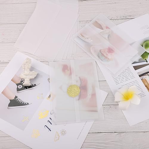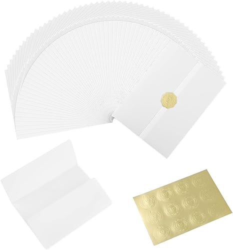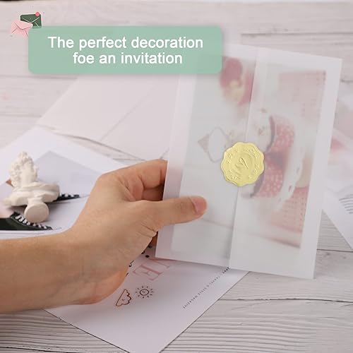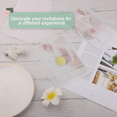 50 Invitations en Papier Vélin et 60 Autocollants pour Sceau d'Enveloppe, Papier Vélin Translucide Pré-Plié 13 x 18 cm Enveloppe Vellum pour Invitation d'Anniversaire de Mariage Baby Shower