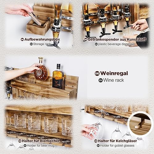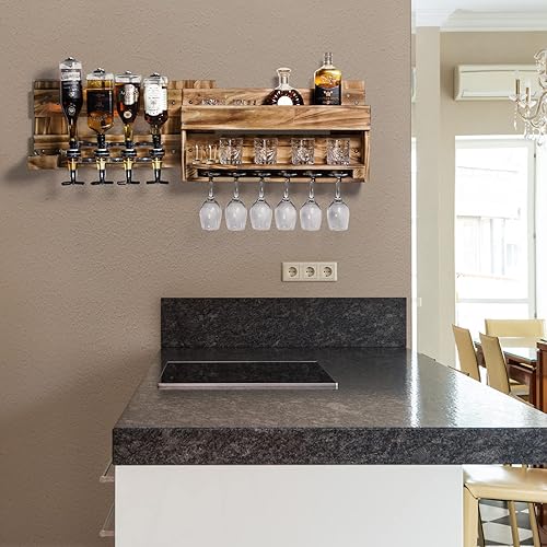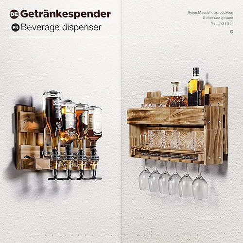 Yorbay Casier à Bouteilles Mural avec 4 Distributeur de Boissons, Étagère à Vin, Porte-Bouteilles et Porte-Verre à Pied pour la Cuisine, Le Restaurant, la Cave à Vin et Le Bar-Home