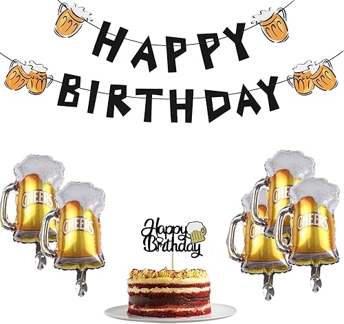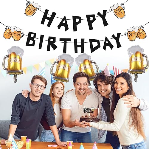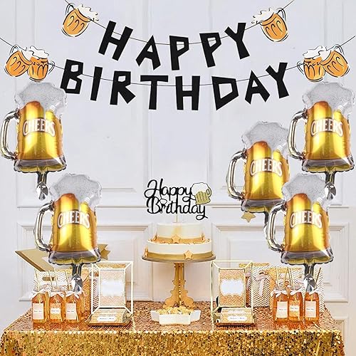 Décoration Anniversaire Bière, 7 Pièces Ballon Bière, Décoration de Gâteau d'Anniversaire, Happy Birthday Bannière Noir, La Fete de La Biere, Deco Thème