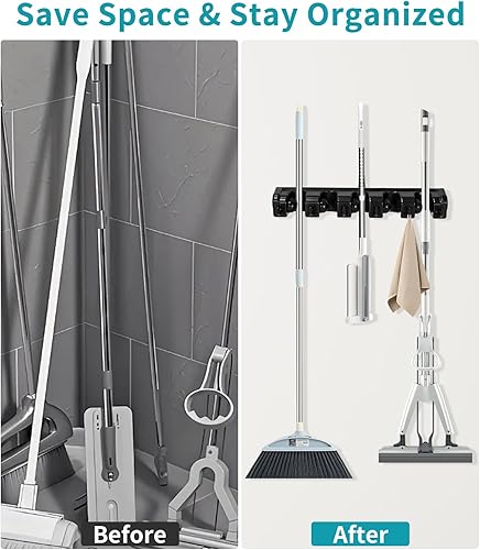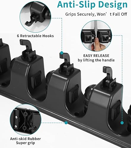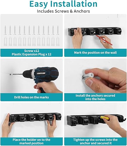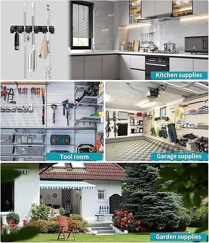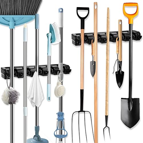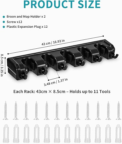 Vuxava 2 Pièces Accroche Balai Mural,Porte-Balais Muraux avec 10 Emplacements et 12 Crochets – Support Mural pour Balais, Outils de Jardin et Garage – Rangement Outils Jardin et Maison
