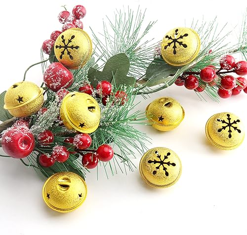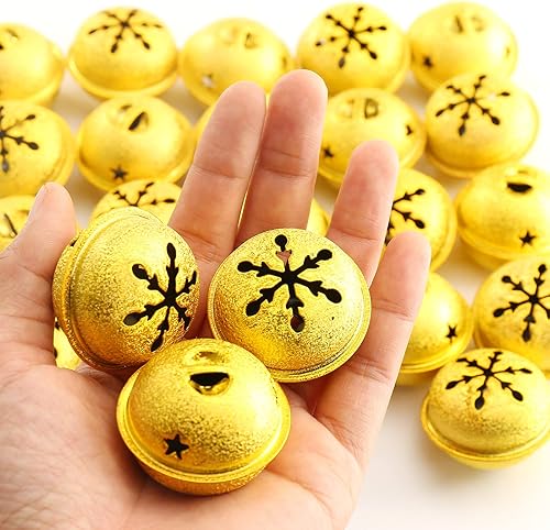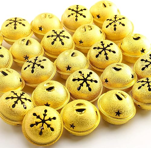 HERZWILD 24pcs Grelots de Noël 4cm Cloches en Métal Grandes Décoratives pour Arbre Décoration (Dorées)