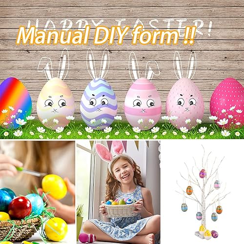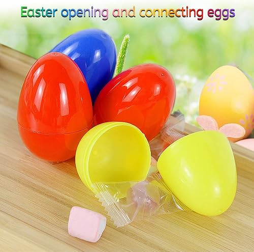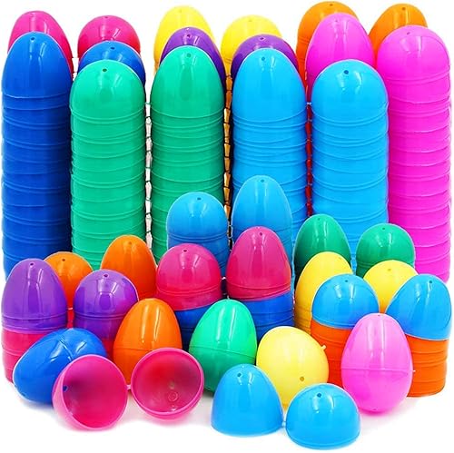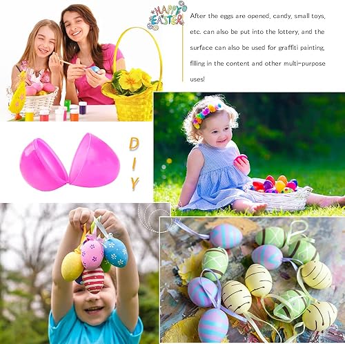 XiXiRan Oeufs de Pâques Colorés, Oeufs de Pâques en Plastique, Oeufs de Pâques Decoration, Oeufs en Plastique Remplissables, Oeufs Paques Couleur, Oeufs en Plastique Suspendus avec Corde (100 Pièces)