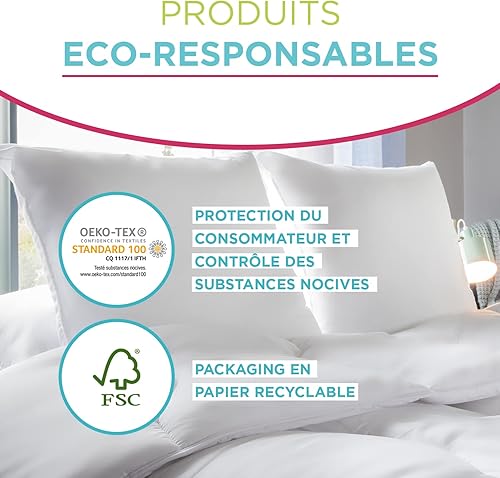 Blanrêve - Lot de 2 Oreillers Confort - Fibres synthétiques - Maintien souple et moelleux pour un endormissement sur le ventre ou sur le dos - Fabriqué en France - 60x60 cm - 450Gx2