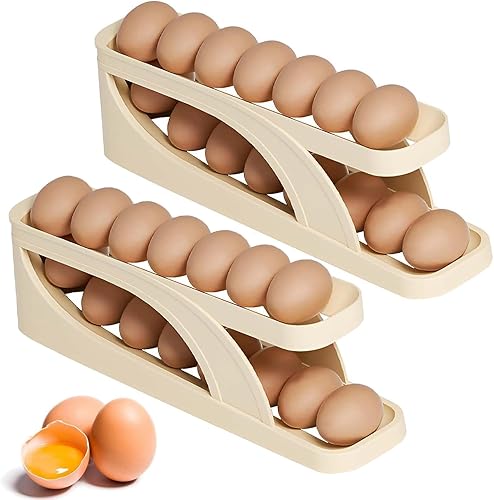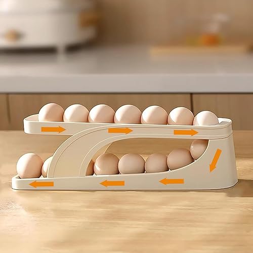 2 Pcs Distributeur D'œufs pour Réfrigérateur, Double Couche Distributeur Oeuf, Bac à œufs à Roulement Automatique, Peu Encombrant Roulant Rangement Oeuf, Peut Contenir 15 Gros œufs