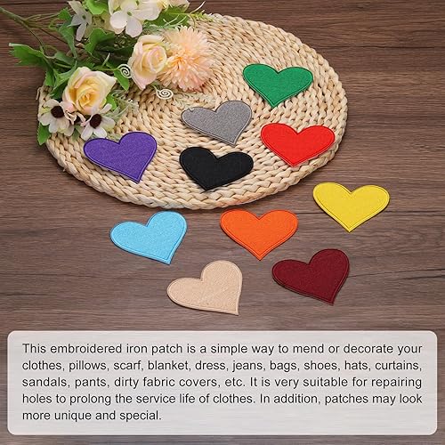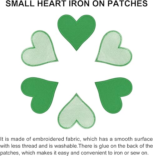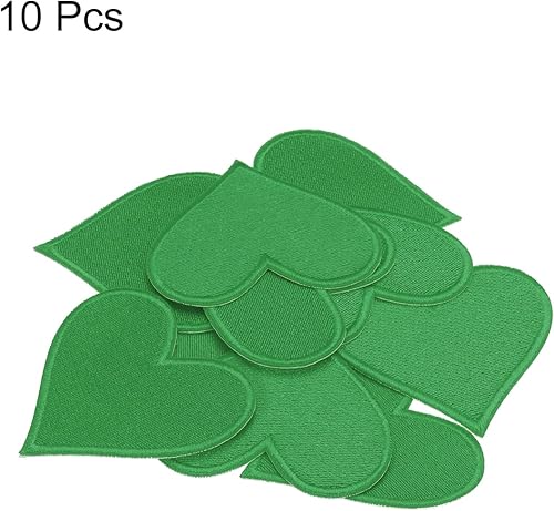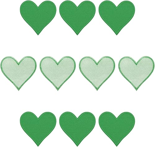 QUARKZMAN Patchs Écusson en Forme de Cœur Verts à Coudre ou à Coller sur Tissu 7,1 x 6,8 cm avec Adhésif Thermocollant pour Réparation de Vêtements, Sac à Dos, Jeans - Lot de 10