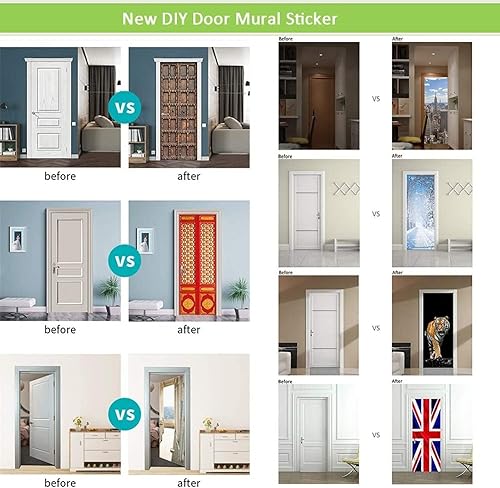 Sticker Porte Effet 3D Porte Vitrée Créative - Autocollant De Porte Trompe L'Œil - 77X200Cm - Mural Papier Peint - Amovible Muraux Stickers -Chambre Salon Cuisine Poster Décoration