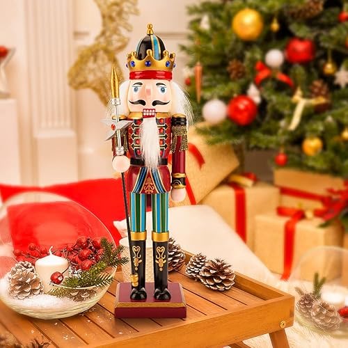 KAHEIGN 2 Pièces Soldats Casse-Noisette en Bois, 2 Styles 30CM Chiffres de Casse-Noisette Traditionnels de Noël Soldat Peint en Bois de Pin de Qualité Supérieure pour Décoration (Trompette & Lance)