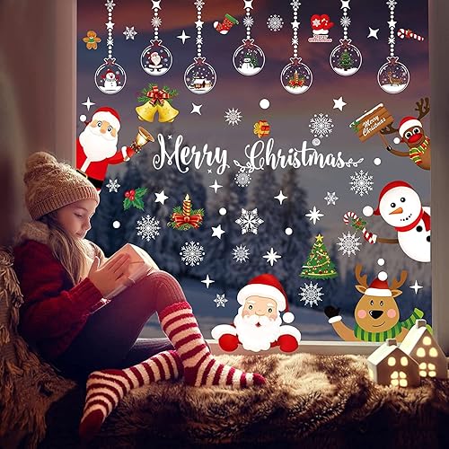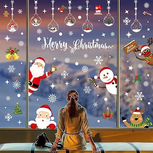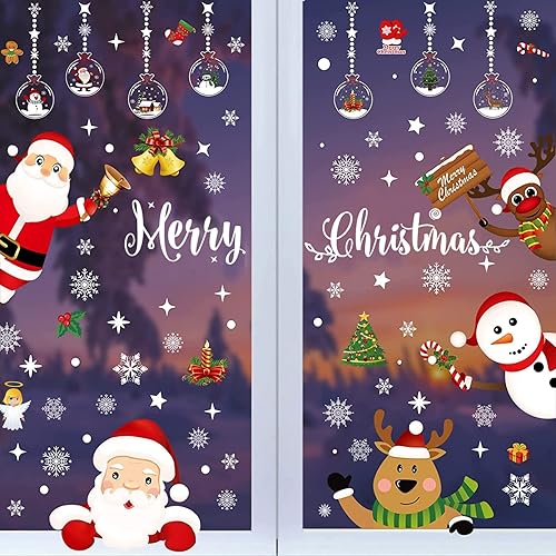 Stickers NoëL Fenêtre 160 Pcs, SUGUREII Autocollant NoëL Fenêtre Amovibles Statique PVC Autocollants, Decoration NoëL Fenetre Réutilisables, avec Père Noël, Flocons de Neige, Wapiti