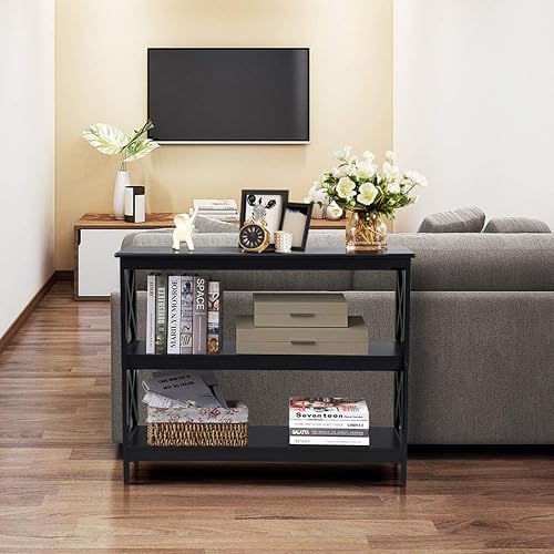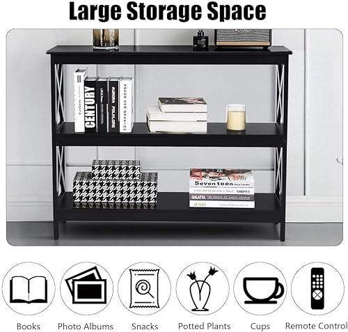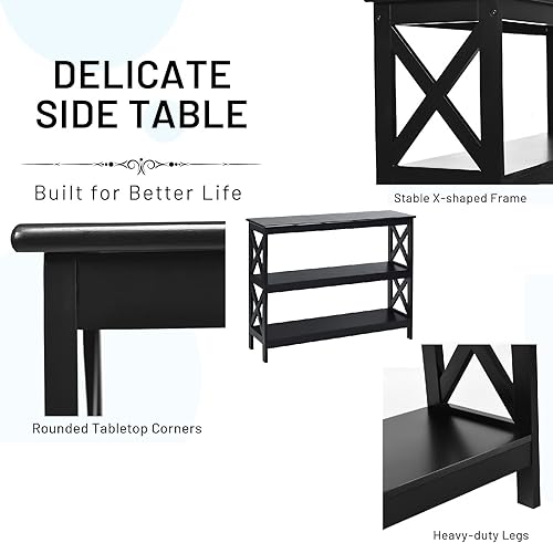 Giantex Table Console Entrée avec 3 Etagères, Console Meuble pour Salon, Chambre, Entrée 100 x 33 x 80 cm (Noir)