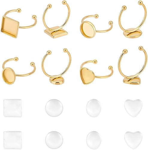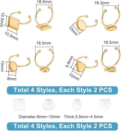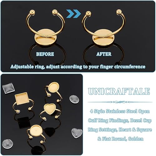 UNICRAFTALE 4 styles Bagues Réglables Base Vierge Composants D'Anneau Ouvert Bague Ronde Bagues de Doigt Bague Acier Inoxydable pour la Fabrication de Bijoux à Faire Soi-Même