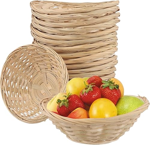 MAKTSAM Lot de 15 paniers à pain ovales en bambou 18 x 14 cm, paniers à pain pratiques tissés pour le stockage des aliments