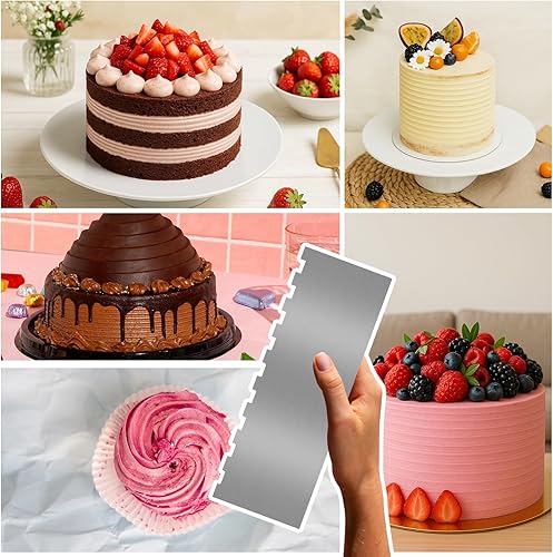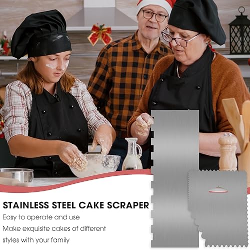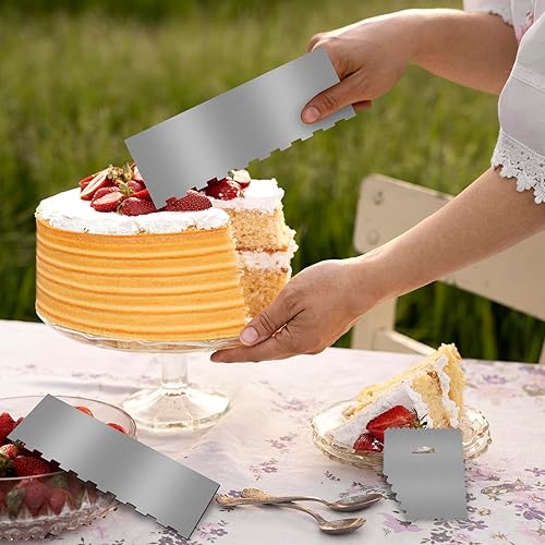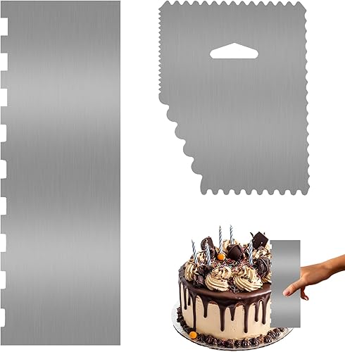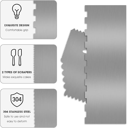 JRSHIRLEYLTD Lot de 2 grattoirs à gâteau en acier inoxydable avec spatule latérale 2 en 1 pour décoration de gâteaux, crème au beurre, mousse, pâtisserie, bricolage
