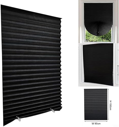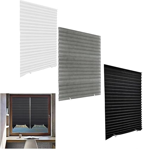 Eawfgtuw Store plissé entièrement occultant - 150 x 90 cm - Sans perçage - Protection solaire - Brise-vue - Pour fenêtres - Facile à installer - Contrôle de la lumière - Opaque - Gris