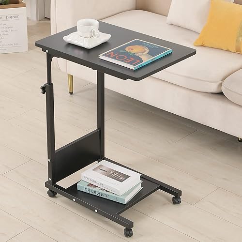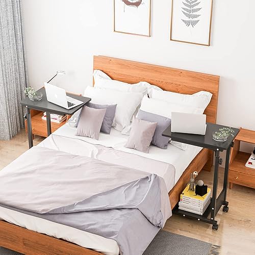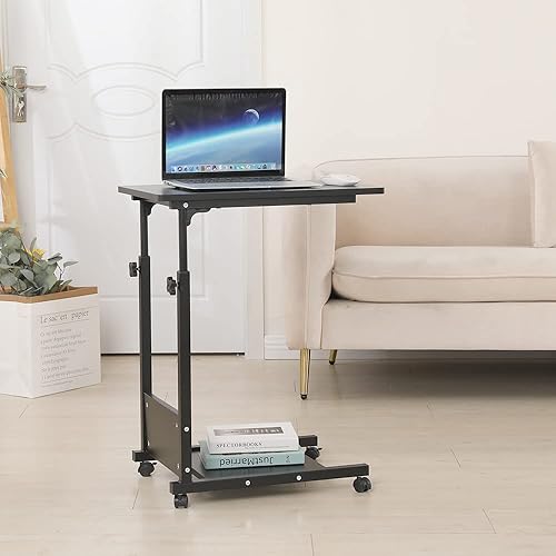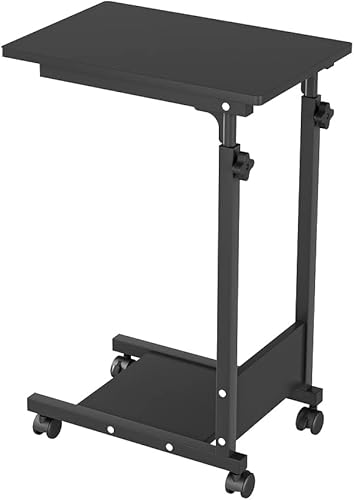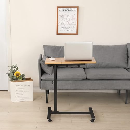 LANTUS Table pour Ordinateur Portable Hauteur réglable roulettes Support Pliable H x l x P: 60 * 34.5 * 58-90cm,Table pour Ordinateur Table Hauteur Bois, Bureau (60 * 34.5 * 58-90cm (Marron))