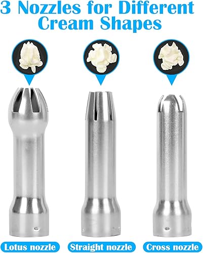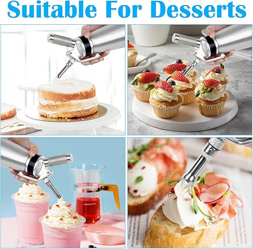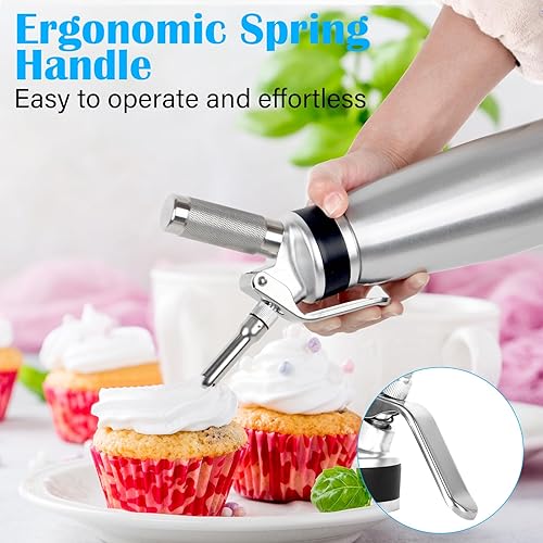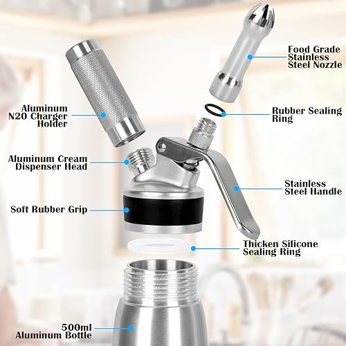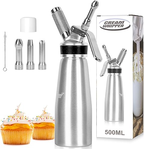 GROFIS 500ml Siphon Chantilly en Aluminium, Syphon Cuisine avec 3 Douilles en Acier Inoxydable et 1 Brosse de Nettoyage, Professionnel Siphon pour Décoration Pâtisserie Crème Glacée Desserts