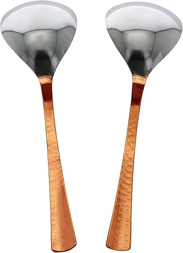 RAstogi Handicrafts Lot de 2 cuillères de service indiennes faites à la main en acier inoxydable et cuivre